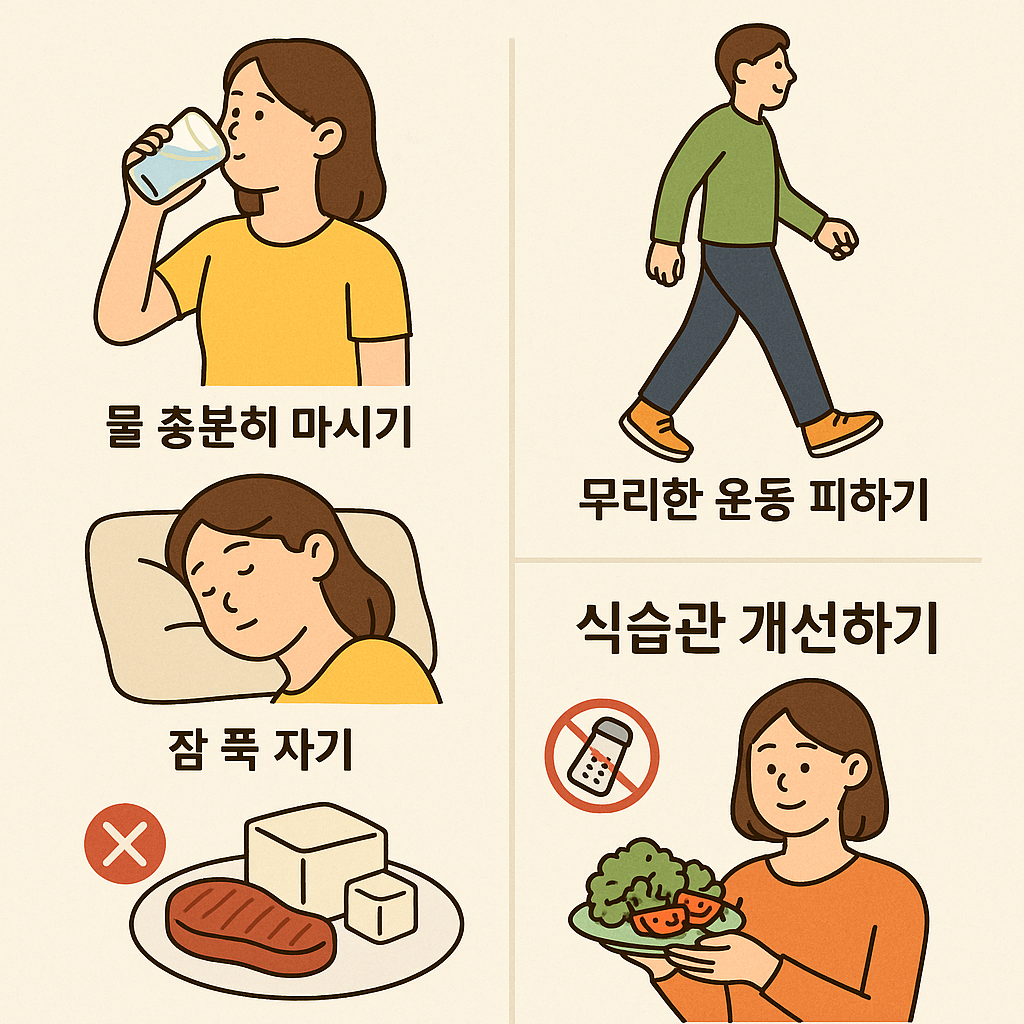 - 잠 푹 자기: 충분한 수면은 신체가 회복하는 데 필수적이에요. 하루 6~9시간 정도 푹 자는 것이 신장 기능을 건강하게 유지하는 데 도움이 됩니다.